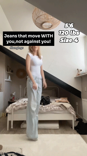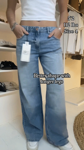 This pair of jeans is designed with a low waist. Low waist pants can show the waist curve, visually lengthen the leg proportions, and create a more slender figure effect.